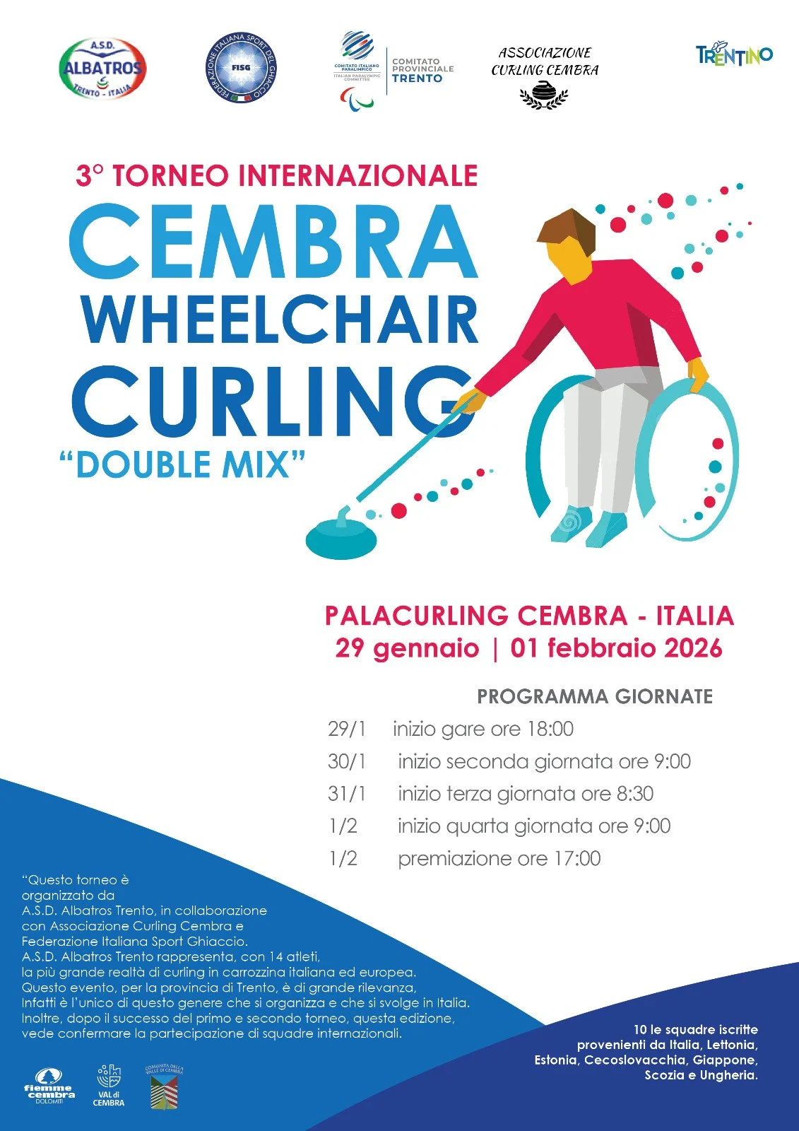 Prima edizione del Trofeo CONI per le discipline invernali delle federazioni sci e ghiaccio. Si ospitano gli eventi in tutto il Trentino e Cembra è la sede per il curling. Atleti under 14 di ogni regione si daranno battaglia per ottenere il titolo è il primo trofeo CONI.