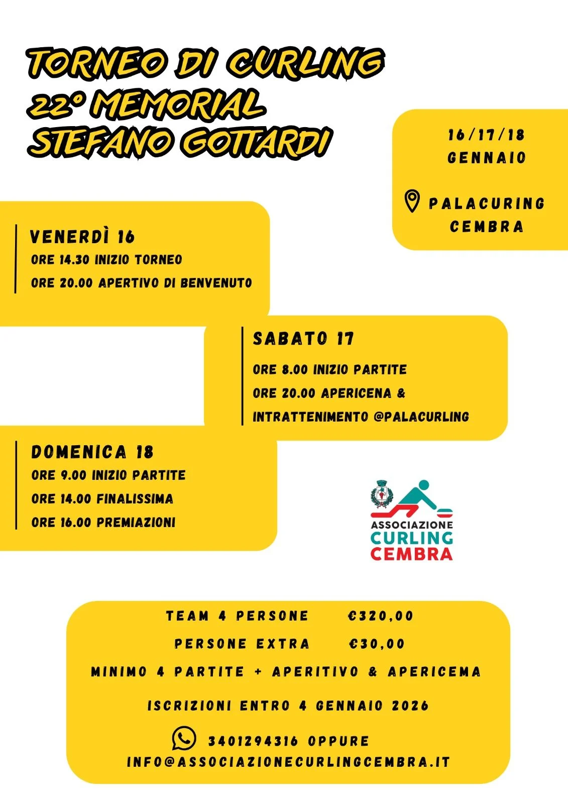 Torna dopo due anni di stop il torneo memorial Stefano Gottardi, giunto alla diciannovesima edizione. Per info ed iscrizioni clicca qui.